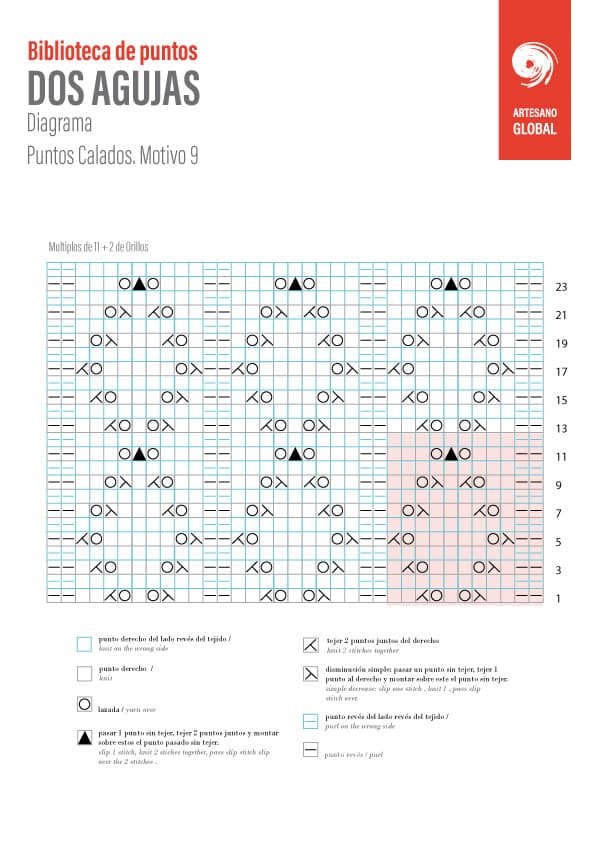 Publicado a las 14:32h in Biblioteca de Puntos Dos Agujas, Puntos Calados . Dos Agujas by Artesano Global 0 Comentarios